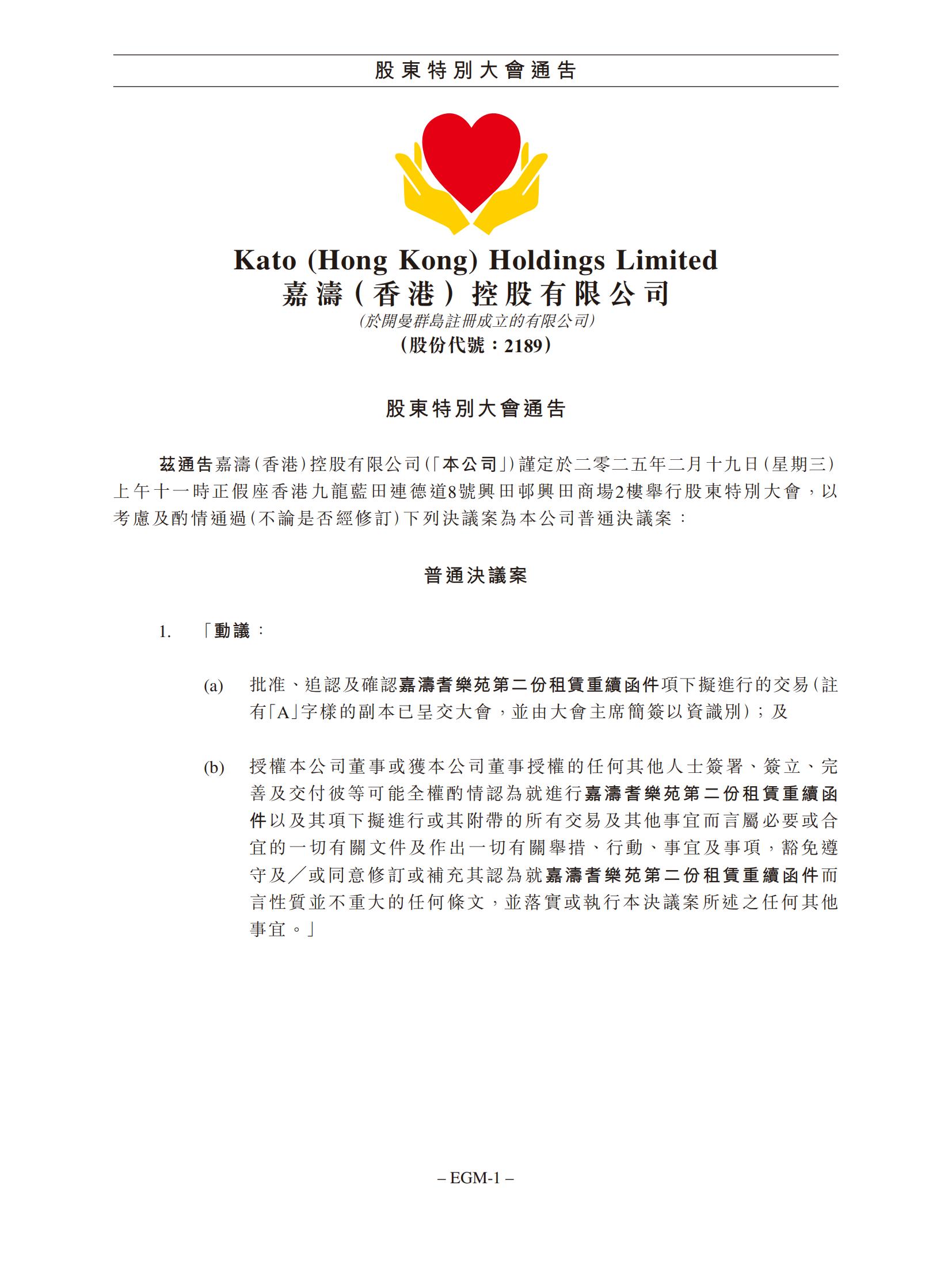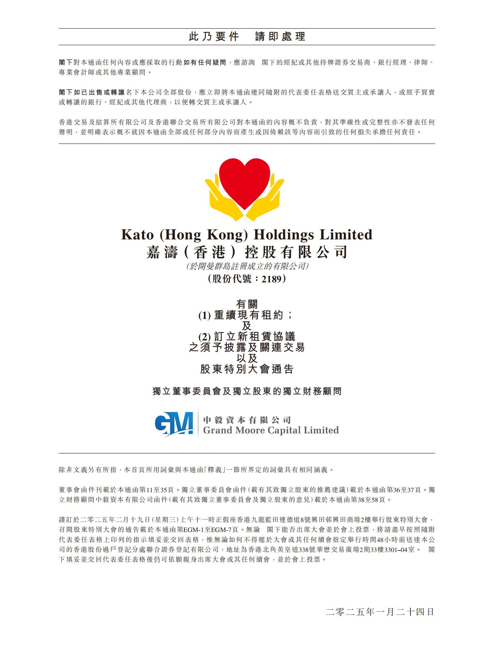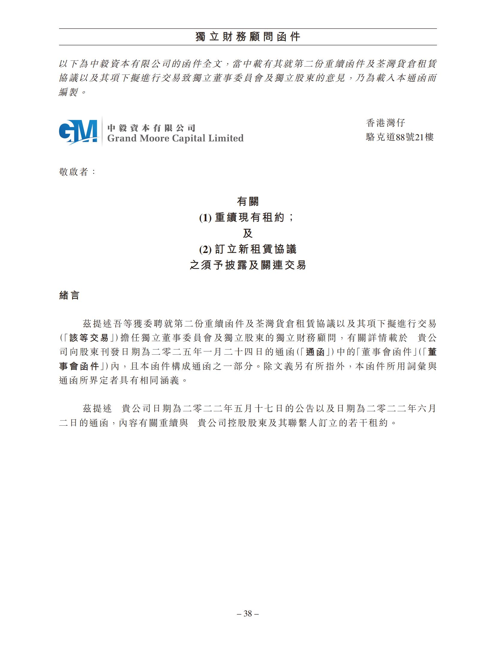有关:(1) 续签现有租约;及 (2) 签订新租赁协议的须予披露及关联交易,以及股东特别大会通告