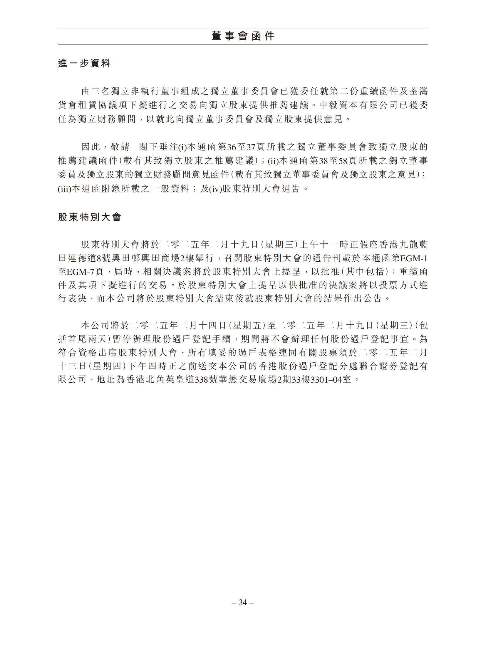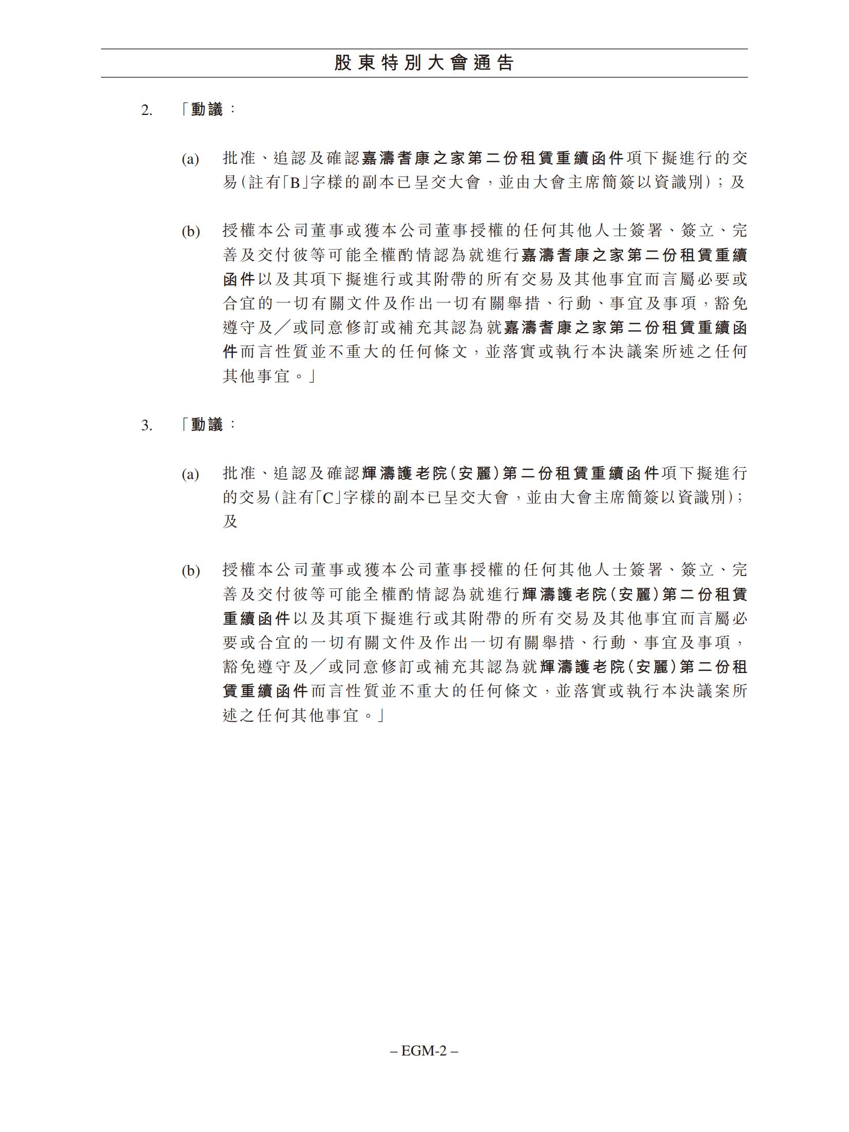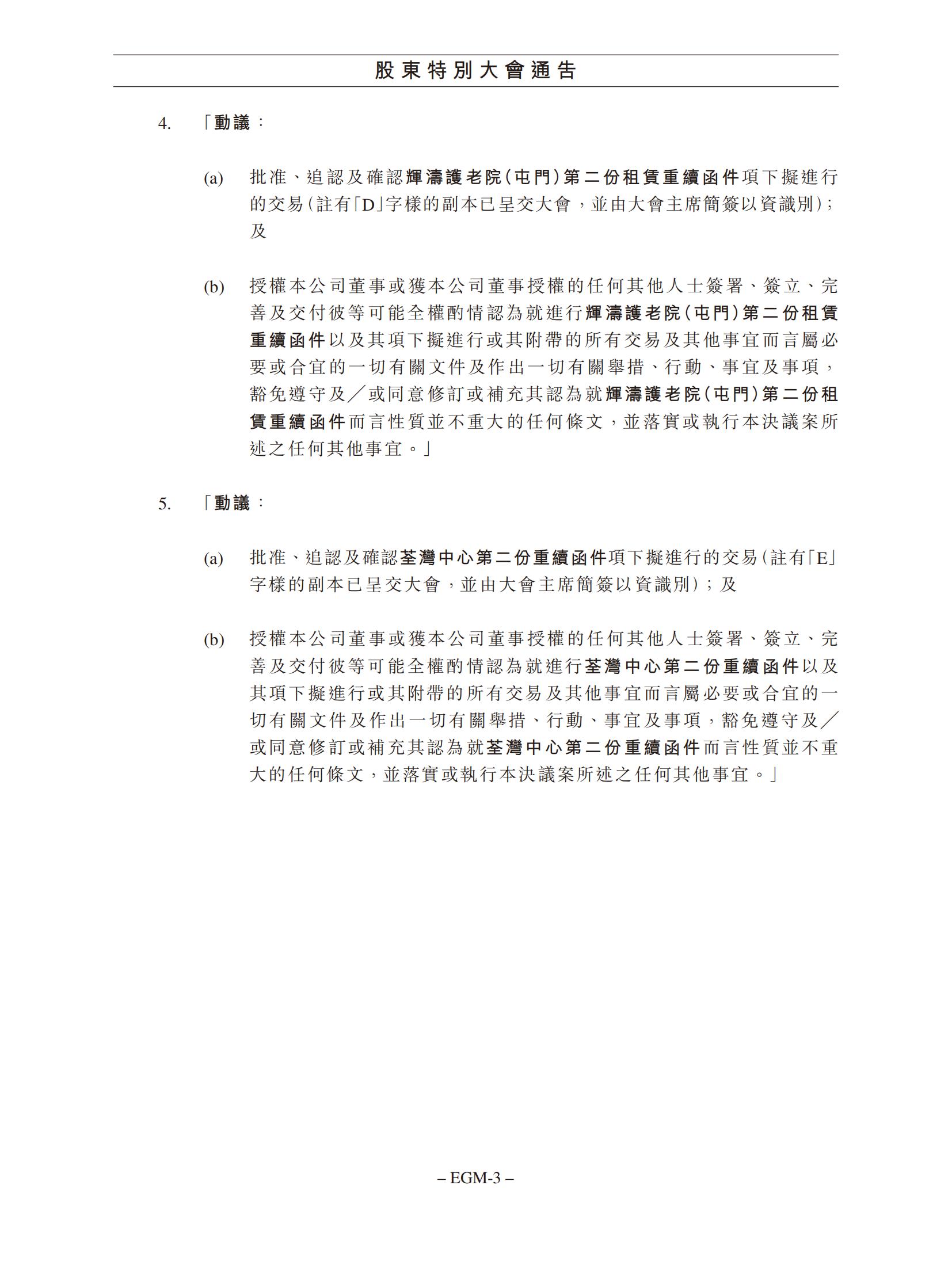 有关:(1) 续签现有租约;及 (2) 签订新租赁协议的须予披露及关联交易,以及股东特别大会通告